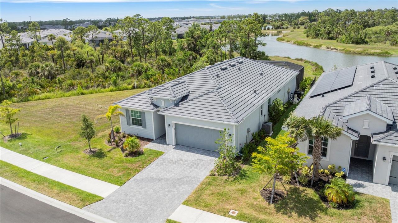 Welcome to your POOL DREAM HOME in the heart of WELLEN PARK! Antigua is a wonderful gated community with easy access to shopping, major highways, Located close to Cool Day Park, the State College, Downtown Wellen Park with restaurants and activities, as well as the Atlanta Braves Stadium. This beautifully designed 2024-built home offers a split floor plan with the perfect blend of modern elegance and resort-style living. Consider this beautiful home as a blank canvas, ready for your own decorating and design. Just imagine how beautiful this home will be with your own designs. There are 3 bedrooms, 3 full bathrooms with a den/office and an open-concept floor plan, this home is designed for both comfort and entertainment. Step inside to discover high-end finishes, sleek tile flooring, and abundant natural light. The gourmet kitchen boasts hard surface countertops, stainless steel appliances, a spacious island, and custom cabinetry as well as a walk-in pantry, making it a chef's delight. The expansive living and dining area flows seamlessly to the outdoor oasis, where you'll find a covered lanai, a sparkling pool, and a relaxing spa-all overlooking a pond. The pool and spa are salt water, and the pool has a variable speed pool pump has 2 years warranty remaining on pool pump and heater. The windows and Sliding doors are all impact windows providing protection. The home offers more privacy, there is green space on the side, and in the front of the house as well as the lake. So you can relax in your pool with a lot of privacy. The luxurious primary suite features a spa-like ensuite bath with dual vanities, a walk-in shower, and a separate soaking tub. Two additional bedrooms provide ample space for family and guests, each with access to stylish bathrooms. Additional features included paver driveway and lanai/pool area as well as a good size laundry room with extra storage space and a sink. Located in the sought-after Wellen Park community, this home is just minutes from shopping, dining, entertainment, and the beautiful Gulf Coast beaches. With easy access to I-75 and top-rated schools, this is Florida living at its finest! Don't miss this exceptional opportunity-schedule your private showing today! PLEASE NOT THAT SOME OF THE PHOTOS ARE VIRTUALLY STAGED.