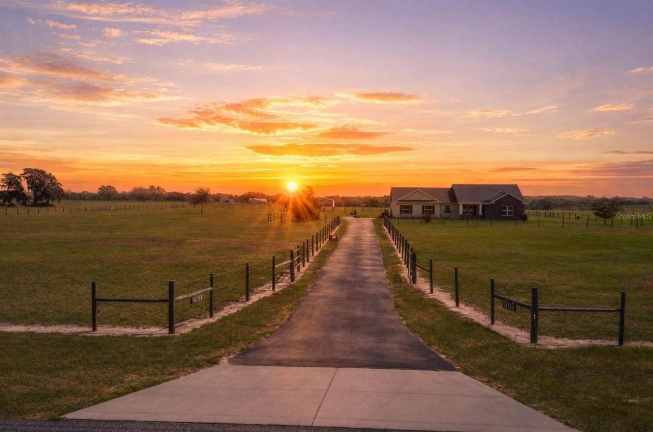 Opportunities like this are becoming increasingly rare in Lake County. Set on nearly 9 acres of cleared, usable land, this 2018-built block home offers the perfect blend of modern construction, equestrian functionality, and peaceful country living.From the moment you arrive, the property opens up to wide pastures, two farm-fenced paddocks, and unobstructed rural views that stretch toward Lake Cooley and Island Lake. Whether you're a horse enthusiast, hobby farmer, or simply someone who values privacy and space, this property was designed for a lifestyle many people search for but rarely find. The acreage is surrounded by hotwire fencing to help protect livestock, providing both functionality and peace of mind for animal owners.Inside, the home features 14-foot ceilings and an open-concept layout that creates an immediate sense of space and natural light. The split bedroom floor plan provides privacy, while the oversized primary suite offers a true retreat with a massive walk-in closet and seamless walk-in shower.Built for both comfort and efficiency, the home includes exterior wall insulation that helps keep the home energy efficient, with electric bills typically under $180 even during the summer months, along with the added peace of mind of a brand new 2024 roof. The property is also served by a deep well providing clean, natural water, a valuable feature for rural living.Outside, the land is already prepared for animals and outdoor living. The property includes two fenced paddocks and a two-stall barn complete with a large tack room and washing station. Two covered carports provide plenty of room for trailers, equipment, or recreational vehicles.Relax on the screened porch overlooking nothing but open pasture and peaceful water views, where the pace of life slows down and the surroundings speak for themselves.Adding even more flexibility, the property allows for an additional dwelling unit, making it ideal for creating a family compound, guest home, or private in-law suite while still maintaining the space and privacy the land provides.Despite the quiet country setting, the property remains conveniently located approximately 20 minutes from Mount Dora, about an hour from Orlando, and roughly an hour from Ocala, providing easy access to dining, shopping, entertainment, and world-class equestrian venues.Properties offering newer construction, nearly 9 acres of usable land, equestrian infrastructure, and lake views are incredibly hard to find. This is more than a home. It's a lifestyle.