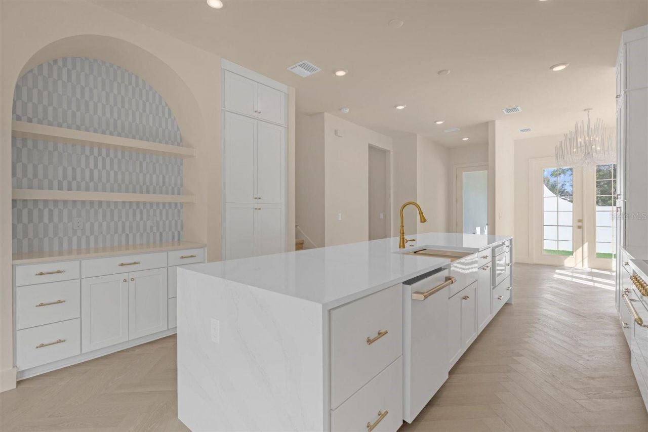 This brand-new residence, thoughtfully designed by Michael Wenrich, captures the timeless elegance and refined simplicity reminiscent of the iconic coastal architecture of Alys Beach. Clean architectural lines, graceful curves, and abundant natural light combine to create a home that feels both sophisticated and inviting.Inside, gorgeous chevron-patterned wood floors flow throughout the main living areas, setting a warm and elegant tone. The open-concept floor plan is designed for both everyday living and effortless entertaining, with expansive windows allowing natural sunlight to pour into every space.At the heart of the home is a beautifully designed kitchen that blends classic style with modern functionality. A stunning quartz waterfall island anchors the space, complemented by custom cabinetry and a suite of high-end appliances including an ILVE induction range with six elements and Caf? French door refrigerator, dishwasher, and microwave. Designer-grade lighting and refined finishes elevate the kitchen into a true centerpiece of the home.The dining room is filled with light and character, featuring three sets of French doors that open to a charming private front and side courtyard-an ideal setting for morning coffee or intimate outdoor dining. In the living room, a dramatic wall of sliding glass doors connects the interior to the brick patio and backyard, creating a seamless indoor-outdoor lifestyle.The first-floor primary suite offers a peaceful retreat, complete with a spacious walk-in closet and a spa-inspired bath featuring a large glass-enclosed shower, separate soaking tub, and dual vanities. Additional conveniences on the main level include a beautifully appointed powder bath, a dedicated laundry room, and a generous storage room tucked neatly beneath the staircase.Upstairs, a versatile loft provides additional living space ideal for a media area, office, or lounge. Two additional bedrooms are also located on the second floor, each featuring custom built-in closets, beautiful designer lighting, and abundant natural light.Built with quality and efficiency in mind, the home includes numerous upgrades such as a slate roof, Trane air-conditioning system, Rheem tankless water heater, and a two-car attached garage.Ideally located just minutes from the renowned shopping and dining of Park Avenue and the charm of downtown Winter Park, this exceptional home also offers convenient access to major roadways, Orlando International Airport, leading hospitals, and top-rated public and private schools-bringing together style, comfort, and location in one remarkable new construction opportunity.