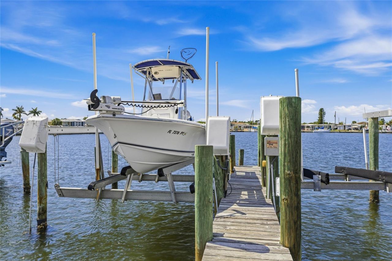 Embrace the Florida waterfront lifestyle in this beautifully updated double-wide home located within a the vibrant 55+ waterfront community of Tropic Isles designed for relaxation, recreation, and an active coastal lifestyle. Just steps from the home, this property includes a deeded dock with 10,000-lb boat lift at the end of the cul-de-sac, making it easy to spend your days boating, fishing, kayaking, or simply enjoying peaceful views along the water. Inside, the home has been thoughtfully updated to create a bright and welcoming space with a relaxed coastal feel. Wide plank flooring flows throughout the main living areas, complemented by soft neutral tones and abundant natural light that enhance the open layout. The renovated kitchen features crisp white shaker-style cabinetry, granite countertops, modern hardware, a tile backsplash, and an oversized breakfast bar that opens seamlessly to the living and dining areas, creating the perfect space for gathering with friends and family. Multiple living spaces offer flexibility for everyday living and entertaining, including a separate bonus living area highlighted by a warm wood accent wall that adds character and charm. A dedicated office with its own private exterior entrance provides an ideal setup for working from home, a creative studio, or a private guest workspace. Both bathrooms have been tastefully updated with modern vanities, stone countertops, and beautifully finished walk-in showers. Outside, the property features low-maintenance landscaping with no grass to maintain, giving you more time to enjoy the water and the incredible amenities this community offers. Residents enjoy access to an impressive array of amenities including a waterfront clubhouse, heated pool and spa, fitness center, pickleball and shuffleboard courts, game room, library, and community marina with boat ramp. Whether relaxing poolside, staying active with neighbors, or heading out on the water from your deeded dock, this community is designed for enjoying the Florida lifestyle to the fullest. **THIS PROPERTY QUALIFIES FOR A 1% LENDER INCENTIVE IF USING PREFERRED LENDER. INQUIRE FOR MORE DETAILS.**