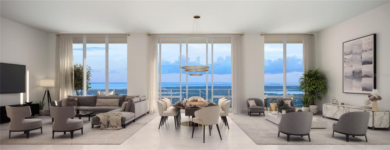 Discover the pinnacle of downtown St. Petersburg living in Penthouse 4102 at 400 Central. This extraordinary residence offers expansive floor-to-ceiling windows and soaring 11' ceilings that showcase breathtaking city and waterfront views. The open-concept design seamlessly blends living, dining, and entertaining spaces, featuring a chef's kitchen with premium appliances, spa-inspired bathrooms, and elegant custom finishes throughout. The luxurious primary suite is a true retreat, boasting a generous 33' x 11' walk-in closet ready to welcome the most curated of wardrobes. Step outside onto your 120' private terrace to entertain against the backdrop of stunning sunsets or enjoy a quiet moment above the city.Living at 400 Central means access to world-class amenities that elevate everyday life: a state-of-the-art fitness center, resort-style pool, sky lounge and landscaped rooftop terrace, private dining and event spaces, and 24-hour concierge service. From curated social experiences to the convenience of downtown St. Pete's finest dining, arts, and culture just steps away, Penthouse 4102 embodies the ultimate in modern luxury, comfort, and city lifestyle.