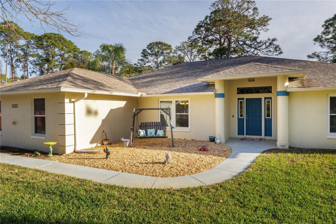 Tucked away in the desirable Art Center / Turnbull Shores area of New Smyrna Beach, this beautifully maintained single-owner former model home offers space, privacy, and a rare connection to nature. This 4-bedroom, 2-bath home sits on an oversized nearly half-acre homesite, set well back from the road with an extended driveway large enough for boats, RVs, trailers, and multiple vehicles -- all with no HOA restrictions.Step through the double-door entry into a bright, open interior featuring high ceilings and spacious living areas. The layout offers a large living room, open kitchen, eat-in kitchen area, and formal dining space, creating an ideal flow for both everyday living and entertaining. A true split-bedroom plan provides privacy for the primary suite, along with the convenience of an inside laundry room.The home has been thoughtfully updated with all new windows throughout, updated flooring, a renovated primary bathroom, and a newer roof. The rear patio has been enclosed into a bright sunroom with full windows and sliding doors, expanding the living space and creating a peaceful place to relax and enjoy the surrounding greenery.The property offers exceptional privacy, with mature landscaping creating a natural buffer from the road and neighboring homes, while the wooded backdrop behind the home provides a tranquil setting filled with birds, deer, and native Florida wildlife.Living here means being surrounded by nature while still close to everything that makes New Smyrna Beach special. The river sits just at the end of the street, perfect for a quiet walk or enjoying coastal breezes, and the renowned Atlantic Center for the Arts is within walking distance, offering trails, events, and cultural experiences throughout the year.One unique opportunity with this property is the potential to purchase the land directly behind the home, which could allow a future owner to extend the backyard and create an even larger private outdoor oasis.Despite the peaceful setting, the location is incredibly convenient--just minutes to the beaches of New Smyrna, the restaurants and shops of Flagler Avenue, the vibrant downtown district (approximately 7 minutes), Port Orange, and the New Smyrna Beach Airport.A rare opportunity to own a private, spacious home surrounded by nature while remaining close to everything New Smyrna Beach has to offer.