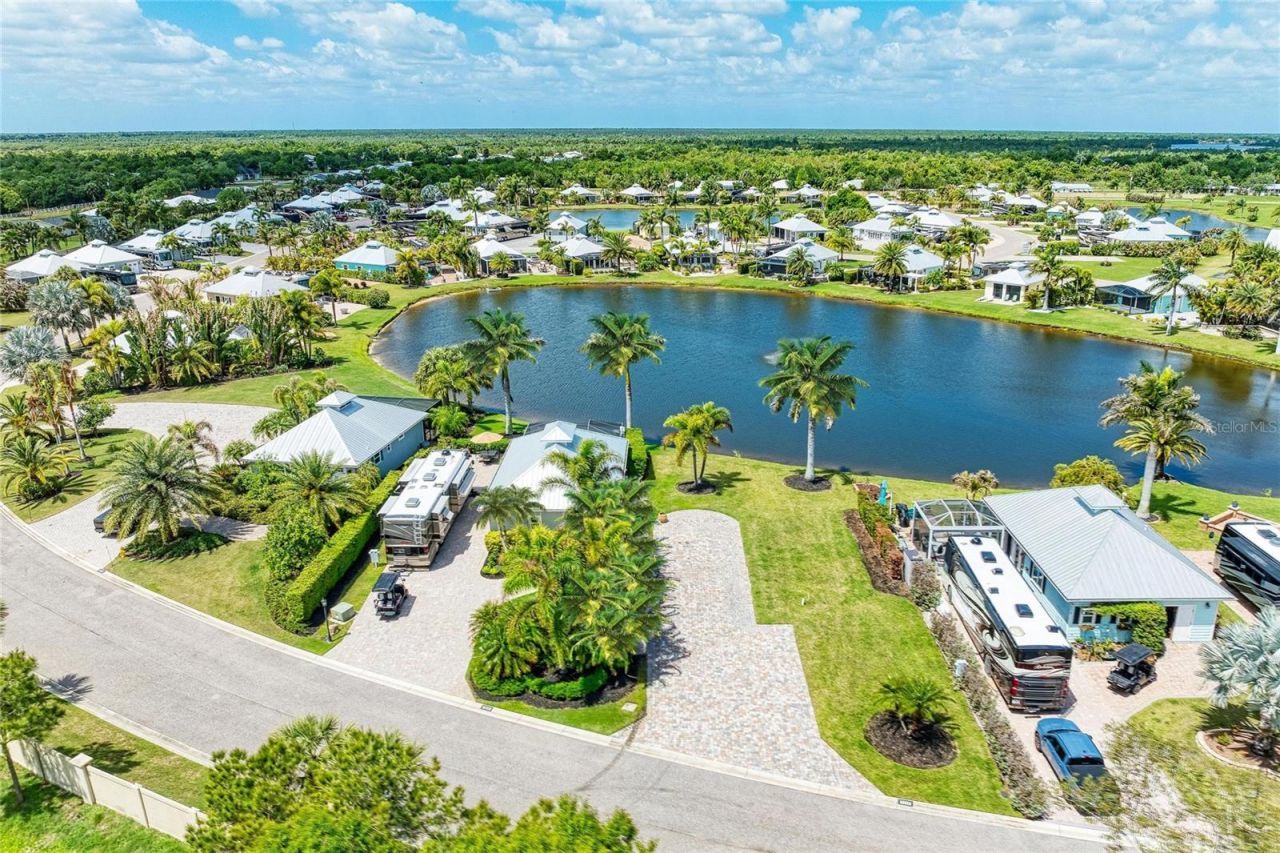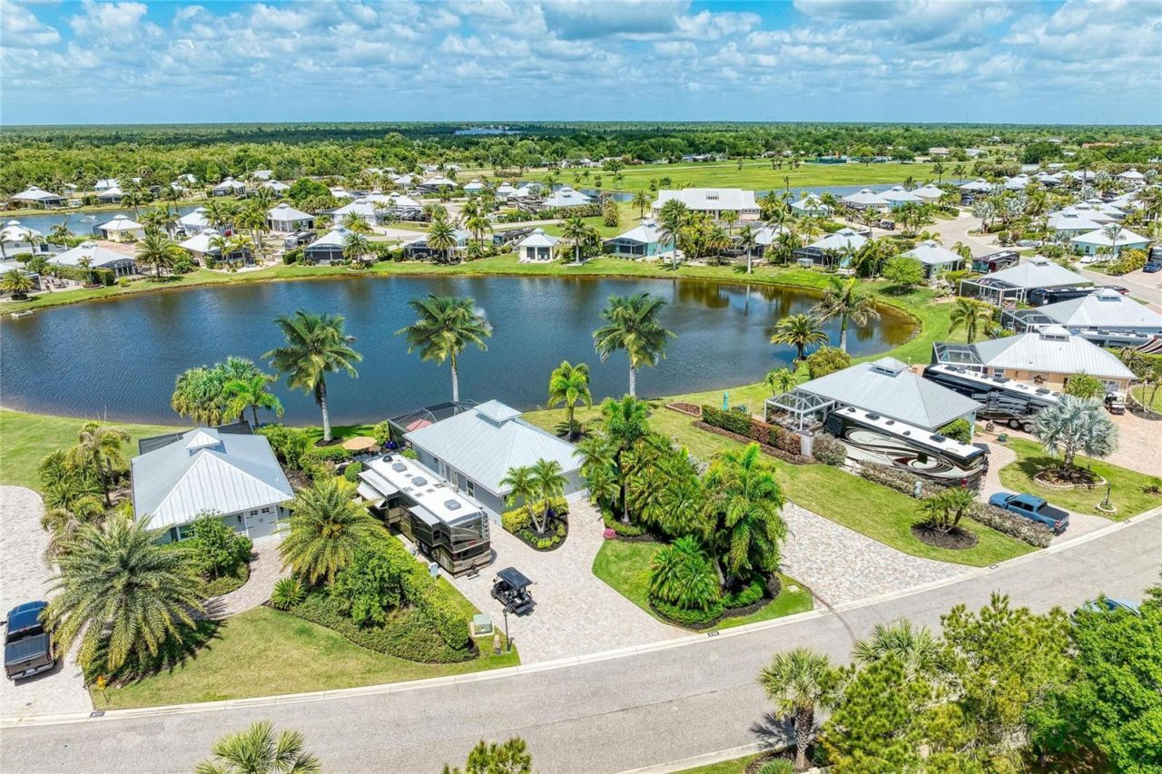 This beautiful and cozy Coach House on Lot 38 at Thornton Creek Motorcoach Resort offers the perfect space for everyday living or entertaining guests. With 1,000 square feet under roof seamlessly connected to a 375-square-foot screened lanai, the home feels bright, spacious, and airy-allowing for natural flow between the fully equipped kitchen and comfortable living area. It also features a dedicated bar area, a versatile room that can be used as a bedroom, office, or guest suite, and a spacious bathroom with a luxurious bath tub and shower. The large laundry area connects directly to the golf cart garage, adding extra convenience. Outdoors, you'll find a charming fire pit area-ideal for enjoying the stunning Gulf Coast sunsets. The mature landscaping was designed with privacy in mind. This property is located just a short walk from the clubhouse, where you can take advantage of the resort's amenities and social activities. Come visit and tour this beautiful home and experience the exceptional lifestyle of this one-of-a-kind resort, located right across from the golf course. Schedule your private showing today!