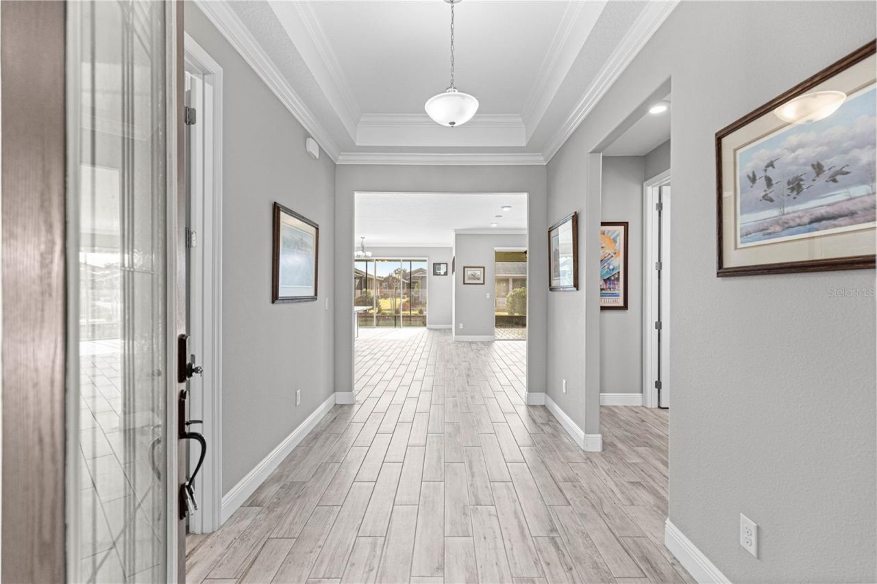 Why buy new when this beautiful Arlington is ready for you now! Featuring 3 bedrooms, 3 bathrooms, and a 3 car garage! NO carpet in the home making it easily maintained. Wood look tile throughout. Paver driveway, walkway and front porch. Plenty of space for a nice sitting area on the front porch. Once inside, it's a great open floor plan with plenty of space. Plenty of cabinets with pull-outs, granite counters, pretty backsplash, gas cook top, wall oven and microwave and a large island bar area making this a dream kitchen for a chef. The living area has a triple slider to the screened in lanai. There is also a paver patio on the back for grilling and entertaining. Primary bedroom is kingsized, primary bath with a walk-in shower and bench. Large walk-in closet. Double sink vanity with granite. Two nicely sized guest rooms and two guest baths. One with a step-in shower and the other with a tub/shower combo. Inside laundry room with more cabinets for storage. The three car garage has an ENCLOSED HOBBY ROOM/OFFICE under heat and air! There is also a whole home water softener. This is a home you don't want to miss. Call for your appointment to view today.